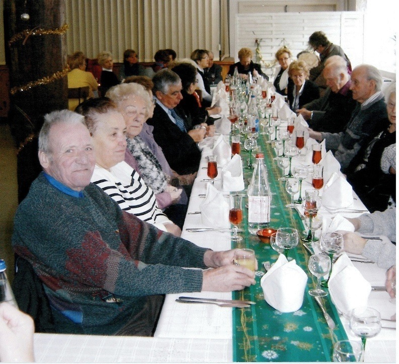 Vue de la table et des convives lors de la fête de Noël 2010 du Club des Gens Heureux de Waldighoffen.