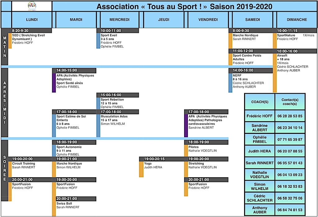 Vous êtes ici : Accueil Vie associative Les associations de Waldighoffen Espace Tous au Sport Waldighoffen Les images et documents de Tous au Sport Planning cours collectifs Association Tous au Sport 2019-2020