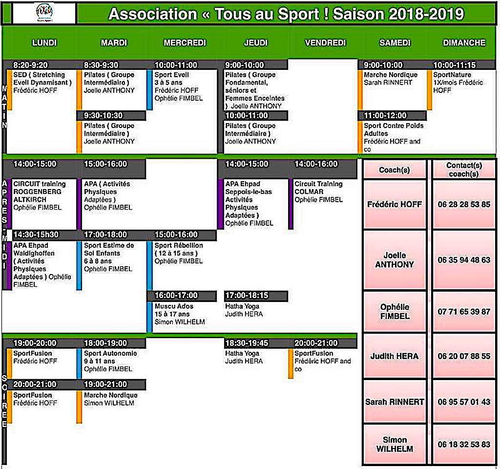 Cours collectifs de Tous au Sport (à Waldighoffen, dans Ma Salle de Sport 3.0) pour la saison 2018-2019
