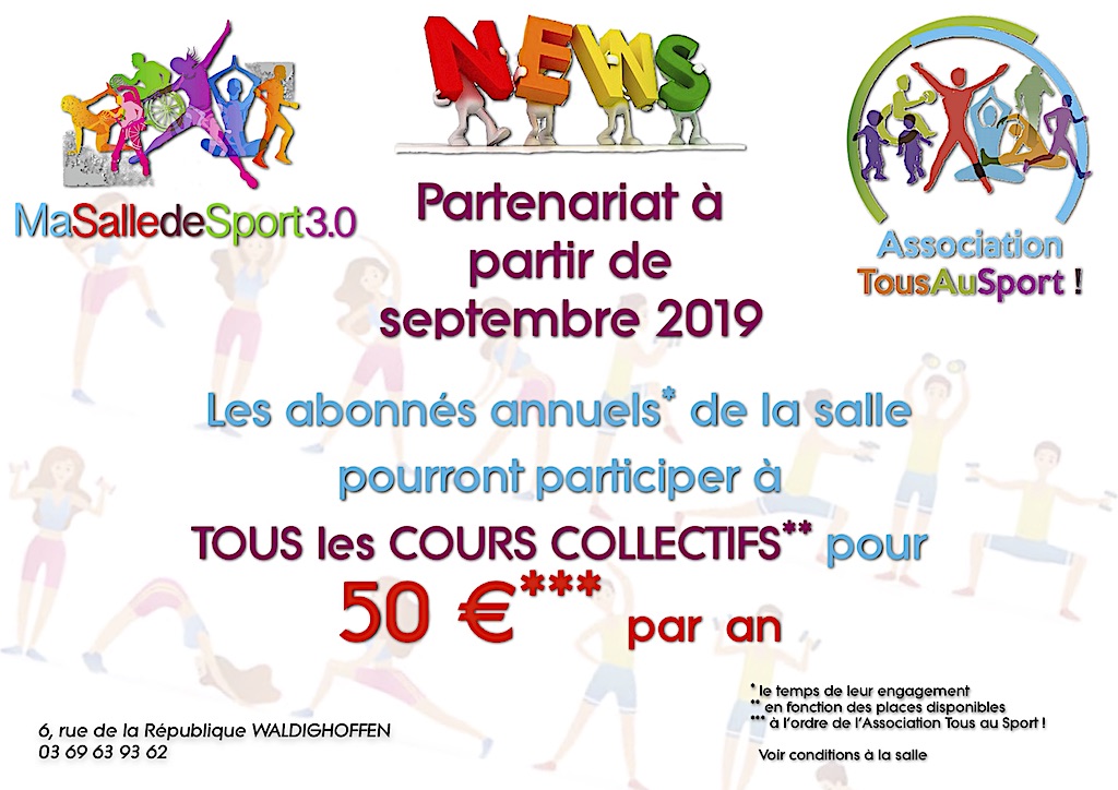 Septembre 2019 Partenariat Ma Salle de Sport 3.0-Association Tous au Sport