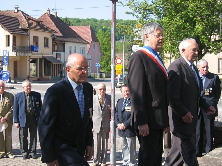 - P.Goldemann, H.Hoff, L.Laborde au moment du dépôt de gerbe lors du 30ème anniversaire de la section UNC Waldighoffen et environs.