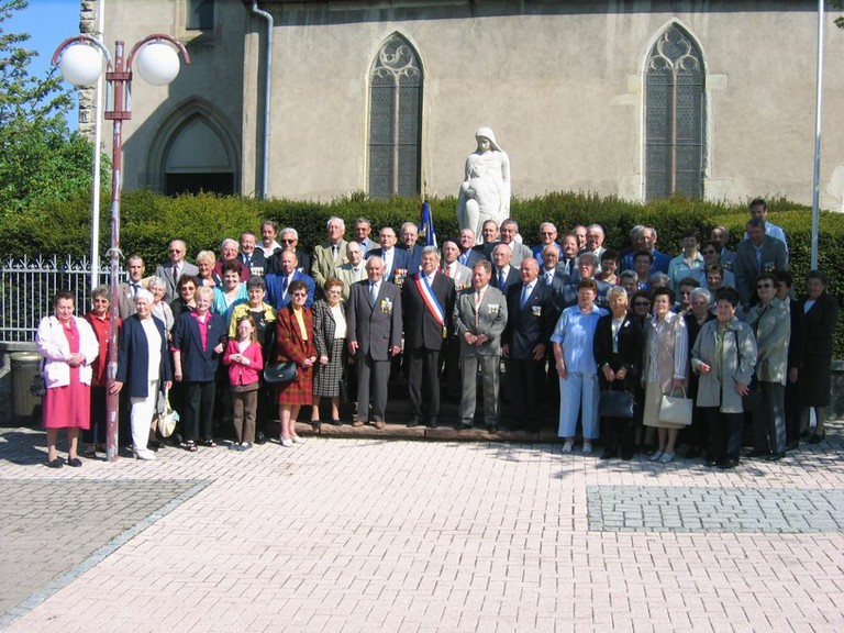 - Photo souvenir des participants devant le Monument aux Morts lors du 30ème anniversaire de l'UNC section Waldighoffen et environs.