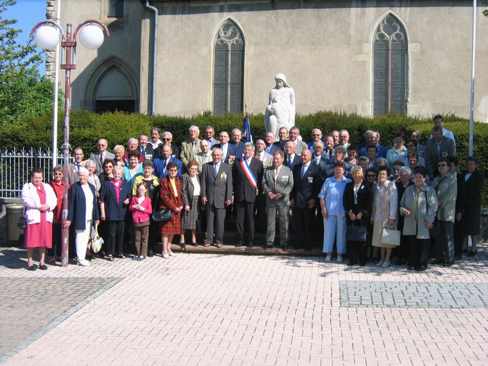 Photo souvenir des participants devant le Monument aux Morts lors du 30ème anniversaire de l'UNC section Waldighoffen et environs.
