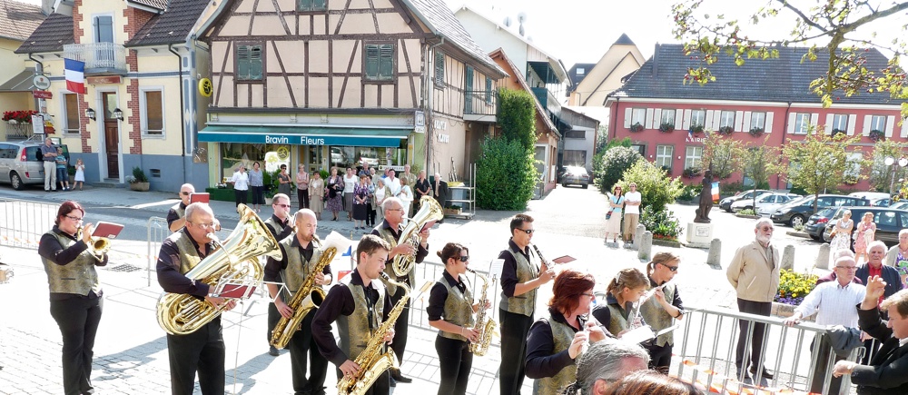 - Photo de la Société de Musique Concordia locale pendant la cérémonie au Monument aux Morts de l'Assemblée Générale UNC du sous-groupe d'Altkirch le 11 septembre 2011 à Waldighoffen.