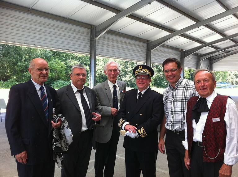 - Photo de groupe avec le président de l'UNC section de Waldighoffen, le Père Hubert Schmitt, le Sous-Préfet d'Altkirch, le président de l'ACAW et M. Minéry au vin d'honneur après l'Assemblée Générale UNC du sous-groupe d'Altkirch le 11 septembre 2011 à Waldighoffen.