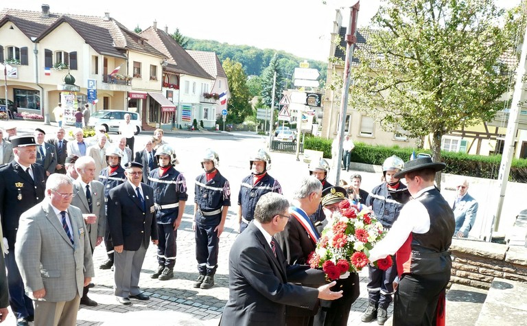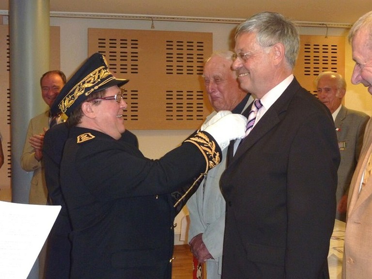 - M. le Maire de Waldighoffen recevant une médaille par le Sous-Préfet d'Altkirch lors de l'Assemblée Générale UNC du sous-groupe d'Altkirch le 11 septembre 2011 à Waldighoffen.