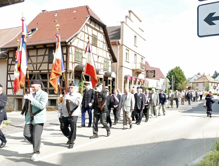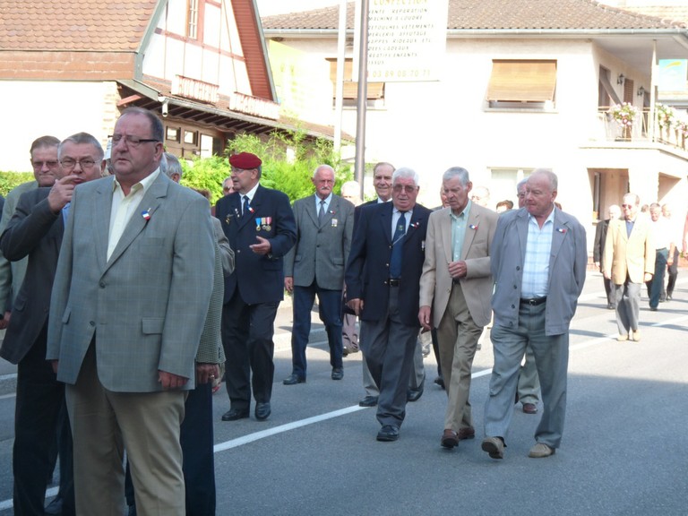 - Des participants à l'Assemblée Générale UNC du sous-groupe d'Altkirch le 11 septembre 2011 à Waldighoffen suivant le cortège pour aller assister à la messe.