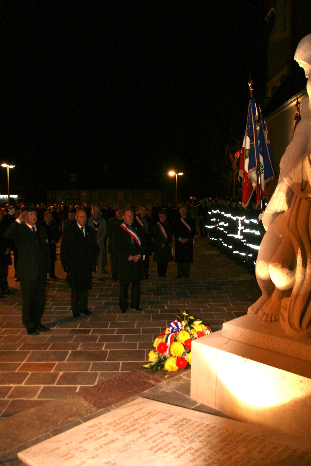 La gerbe de fleurs a été déposée au pied du monument aux morts par les élus et officiels lors la cérémonie du 11 novembre 2013.