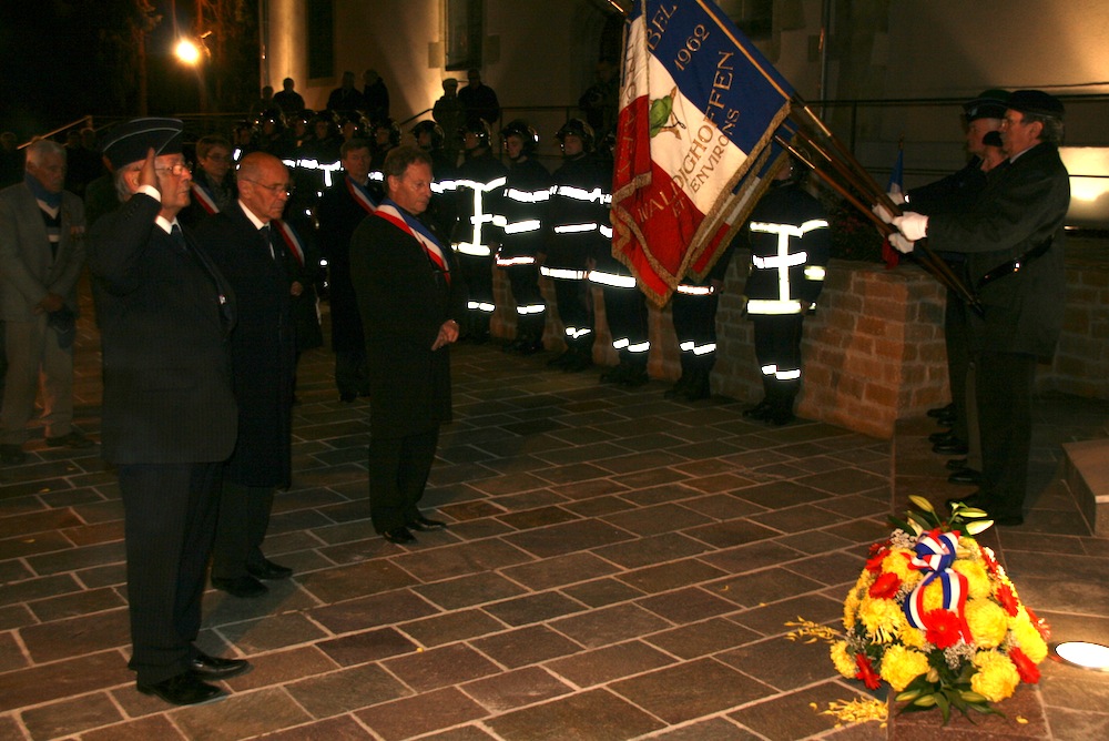 L'honneur aux drapeaux pendant la cérémonie de commémoration du 11 novembre 2013 à Waldighoffen.