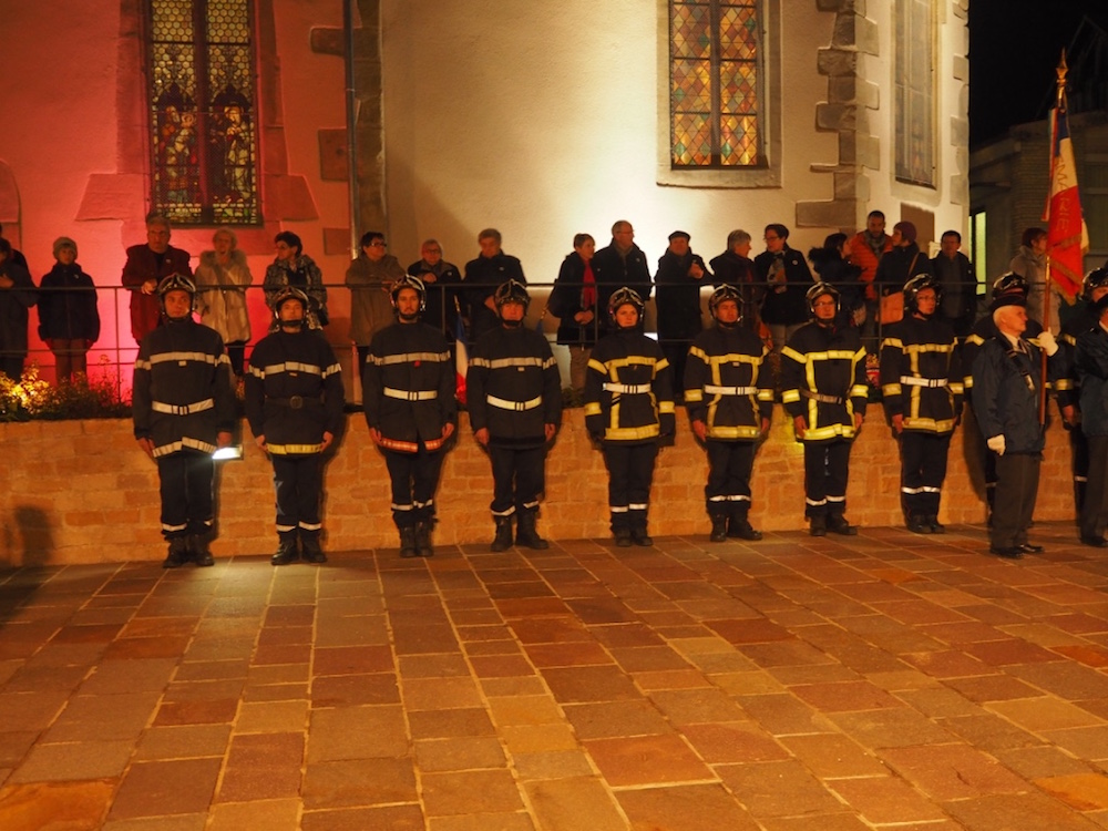 Les pompiers présents lors de la cérémonie du 11 novembre 2016.