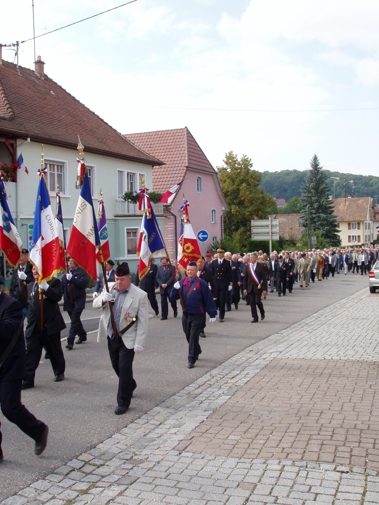 Une partie du cortège lors du congrès départemental de l'UNC Haut-Rhin organisé à Waldighoffen le 09 septembre 2009.