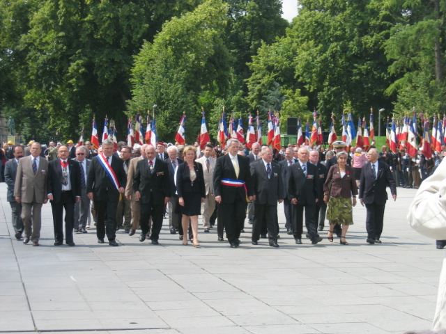 Pendant la cérémonie les officiels en rang devant le monument Rapp lors du Congrès National 2009 de l'UNC à Colmar.