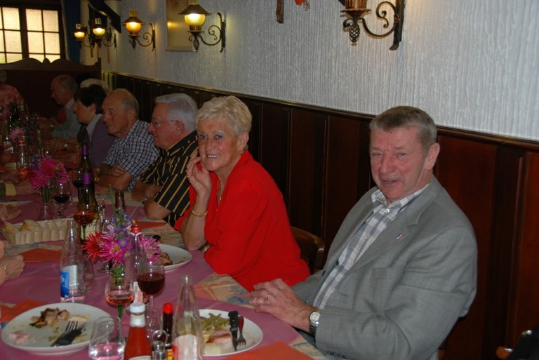 - Table de convives au repas amical 2009 de l'UNC Waldighoffen au restaurant Figaro Bar à Waldighoffen.