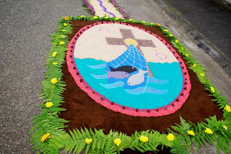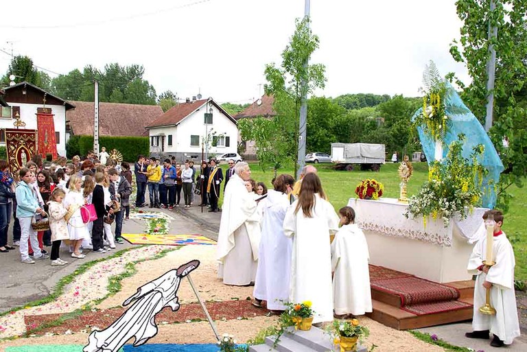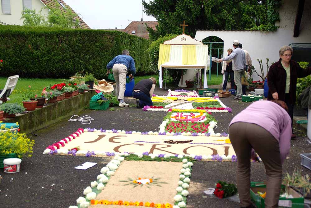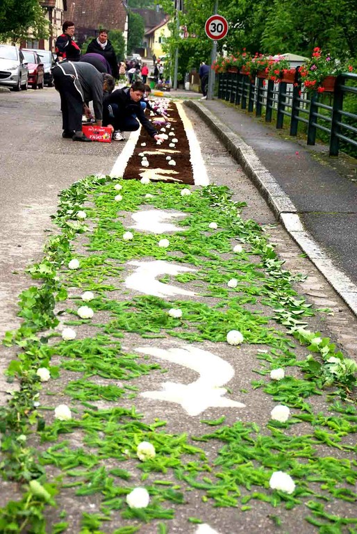 Préparée par les paroissiens des 6 paroisses de Durmenach, Muespach, Muespach-le-Haut, Roppentzwiller, Steinsoultz et Waldighoffen, cette Fête-Dieu a profité d'un beau temps relatif. Ici des photos (J. Haas) des préparatifs, et de la cérémonie.