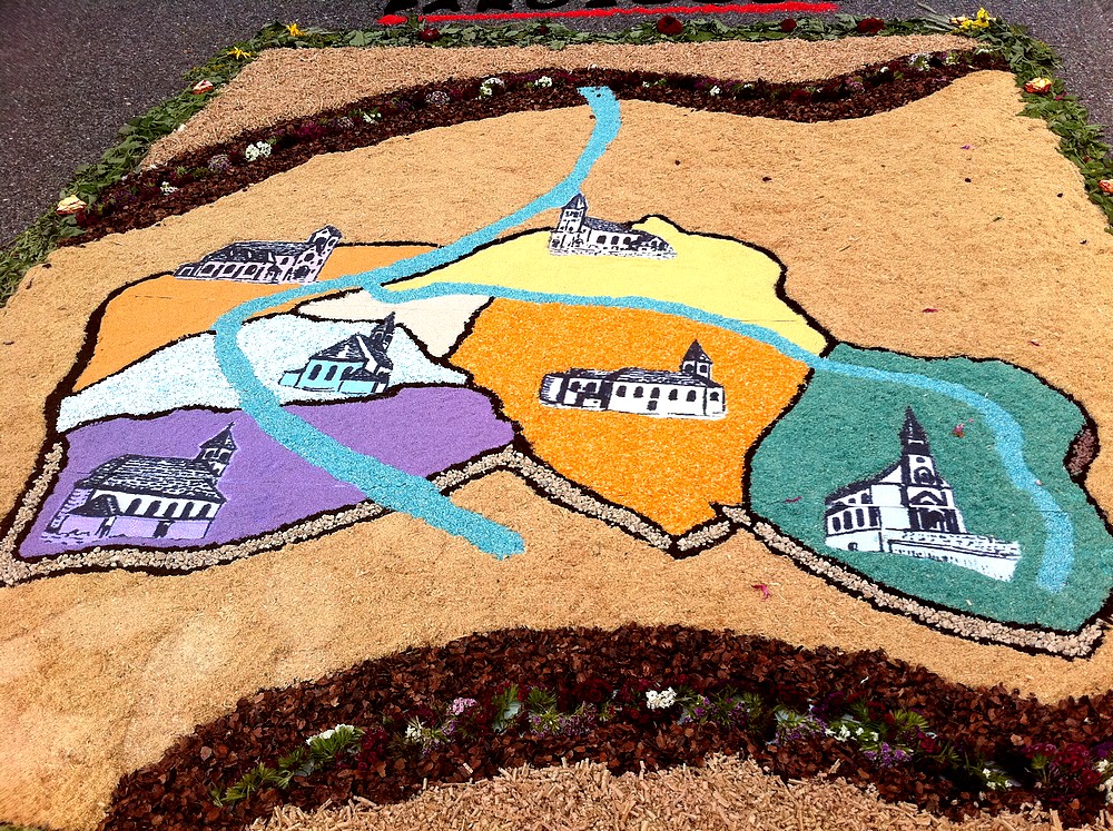 Les églises des 6 paroisses se trouvent représentées sur cette carte