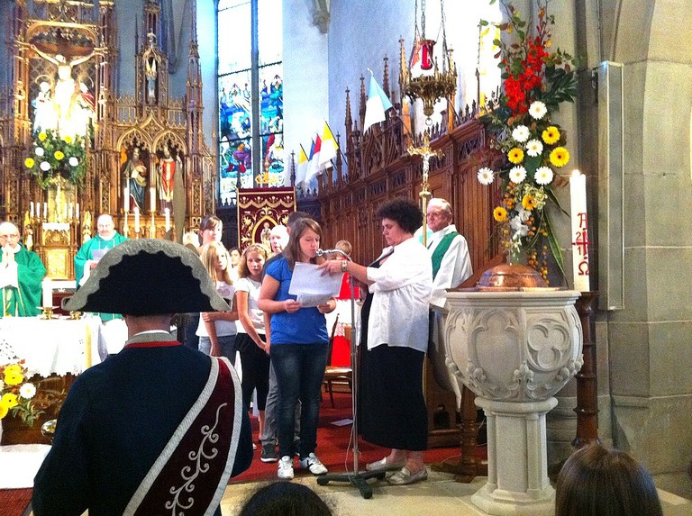 07 Le curé-doyen Dominique KRESS lit la lettre de nomination du Père SMOTER par l'évêque Mgr GRALLET