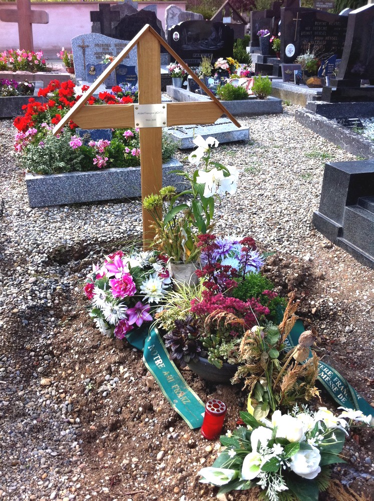Au cimetière de Bergheim, le village de son adolescence; photo prise le 5 septembre 2011