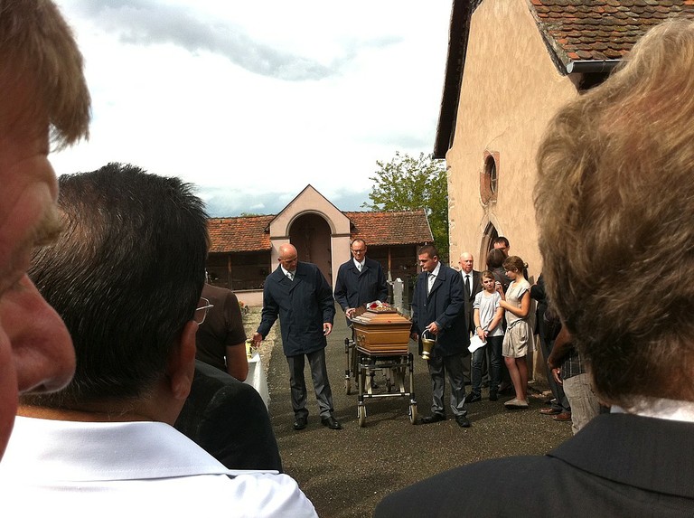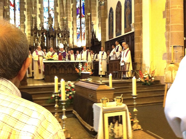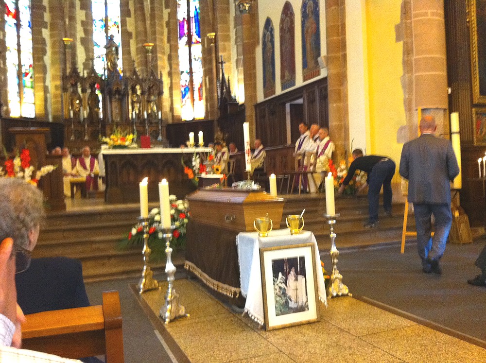 - Le catafalque juste avant le début de la cérémonie des obsèques du Père François lichtlé le 5 août 2011 à Bergheim