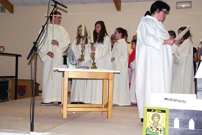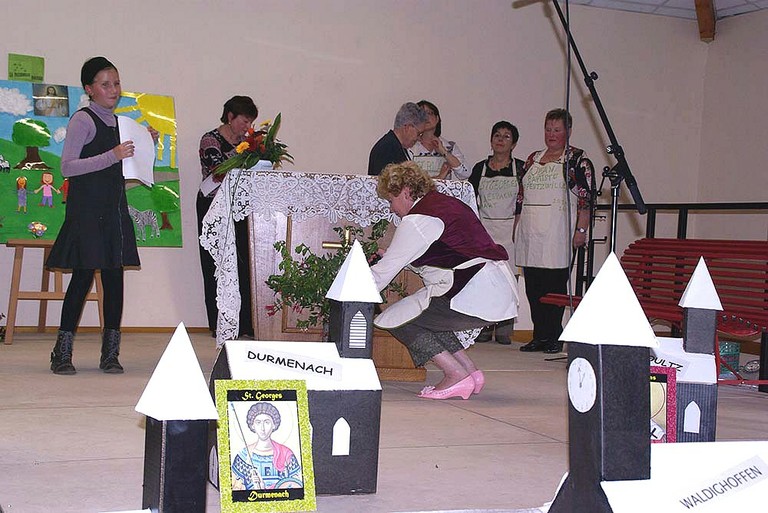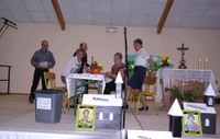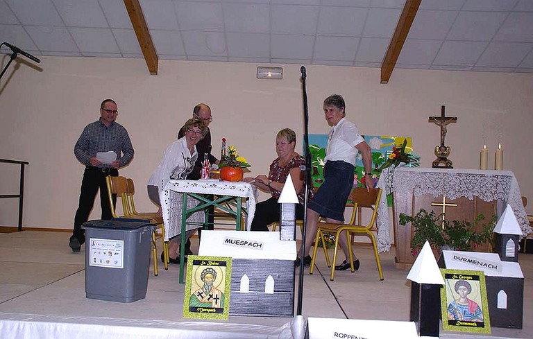 Rencontre dans la salle des fêtes de Steinsoultz avec les jeunes, le servants de messe, les personnes qui s'occupent de la Passerelle, du fleurissement, de la lingerie, etc ... pour les 6 paroisses, suivie d’un moment de convivialité et de partage offert par la municipalité de Steinsoultz.