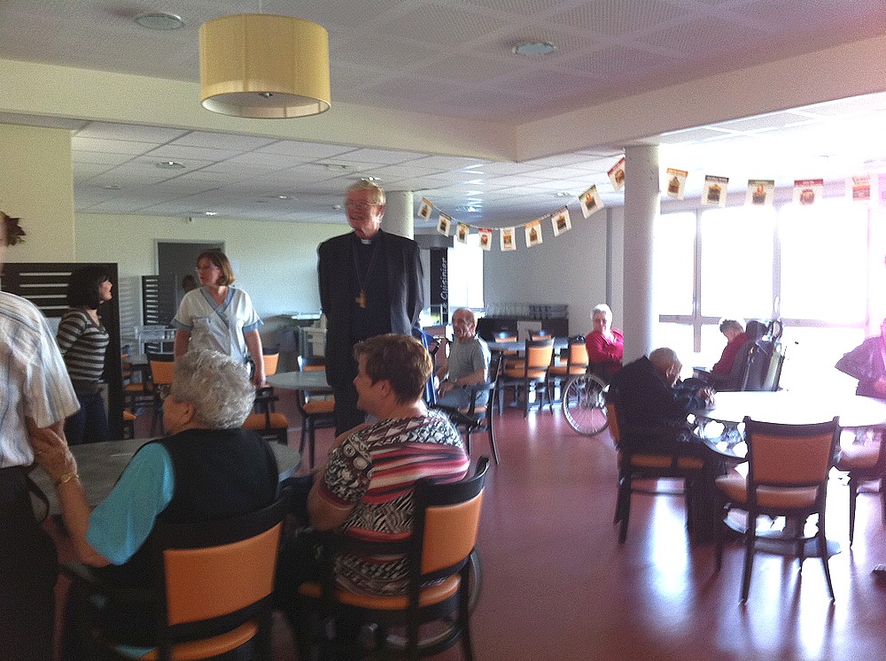 Monseigneur Grallet dans le réfectoire de l'Ehpad de Waldighoffen