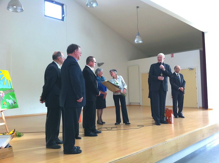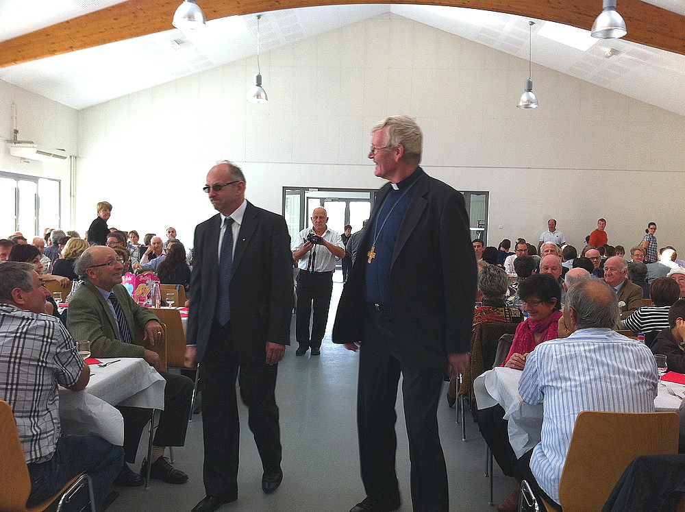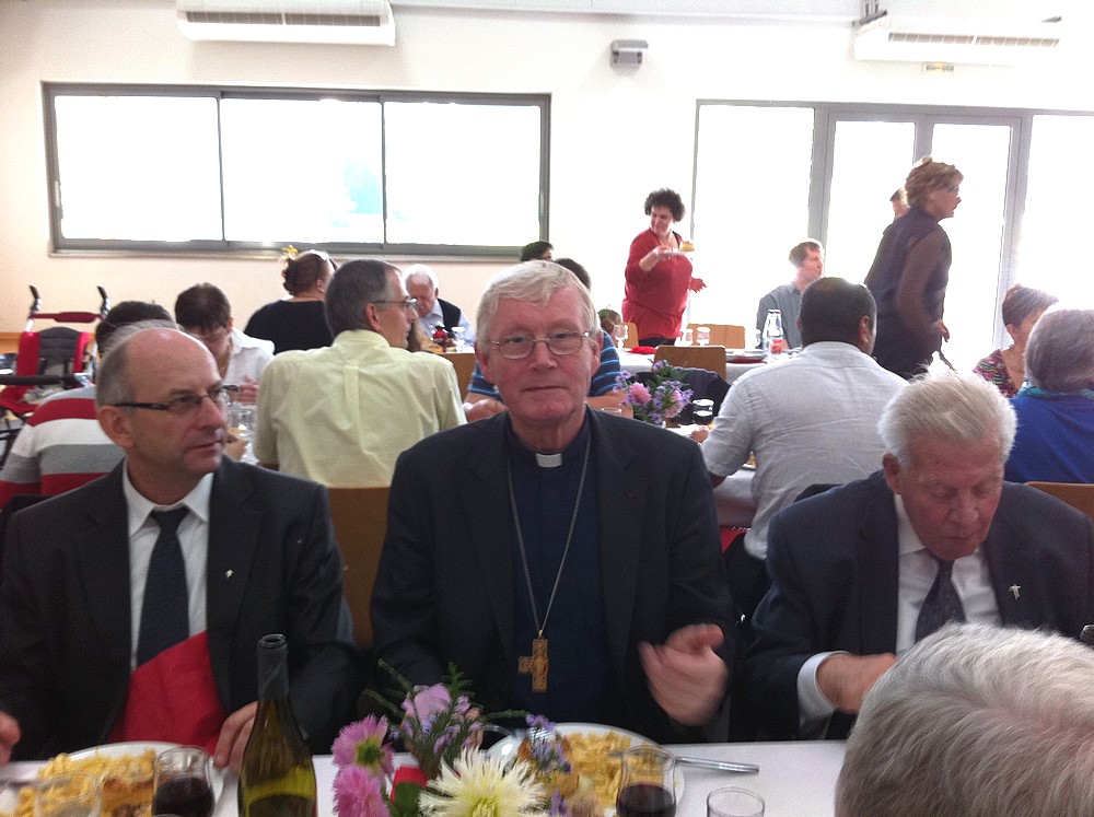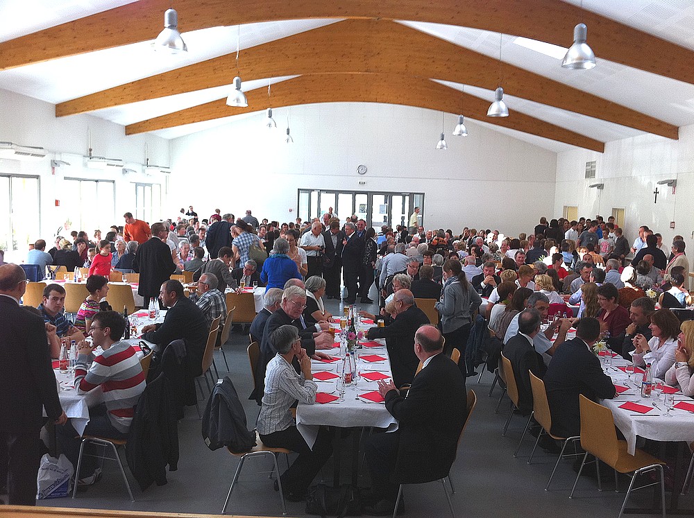 Dans la salle des fêtes de Muespach-le-Haut se sont retrouvées, avec Mgr Grallet et tous les protagonistes du week-end, 300 convives pour clore cet évènement exceptionnel dans la convivialité.