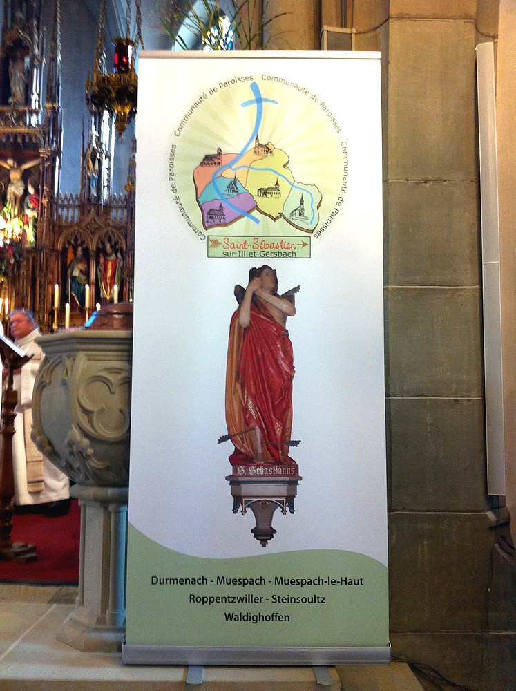 Chaque paroisse a reçu la bannière avec le nouveau logo dessiné par René Minéry et l'image de la statue de St Sébastien