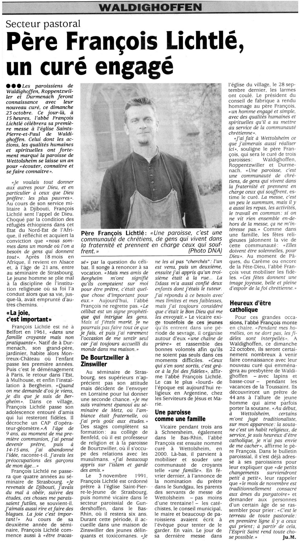 Vous êtes ici : Accueil Vie cultuelle Conseil de Fabrique de Waldighoffen Dossier photos DNA 21 oct 2005 Père François Lichtlé