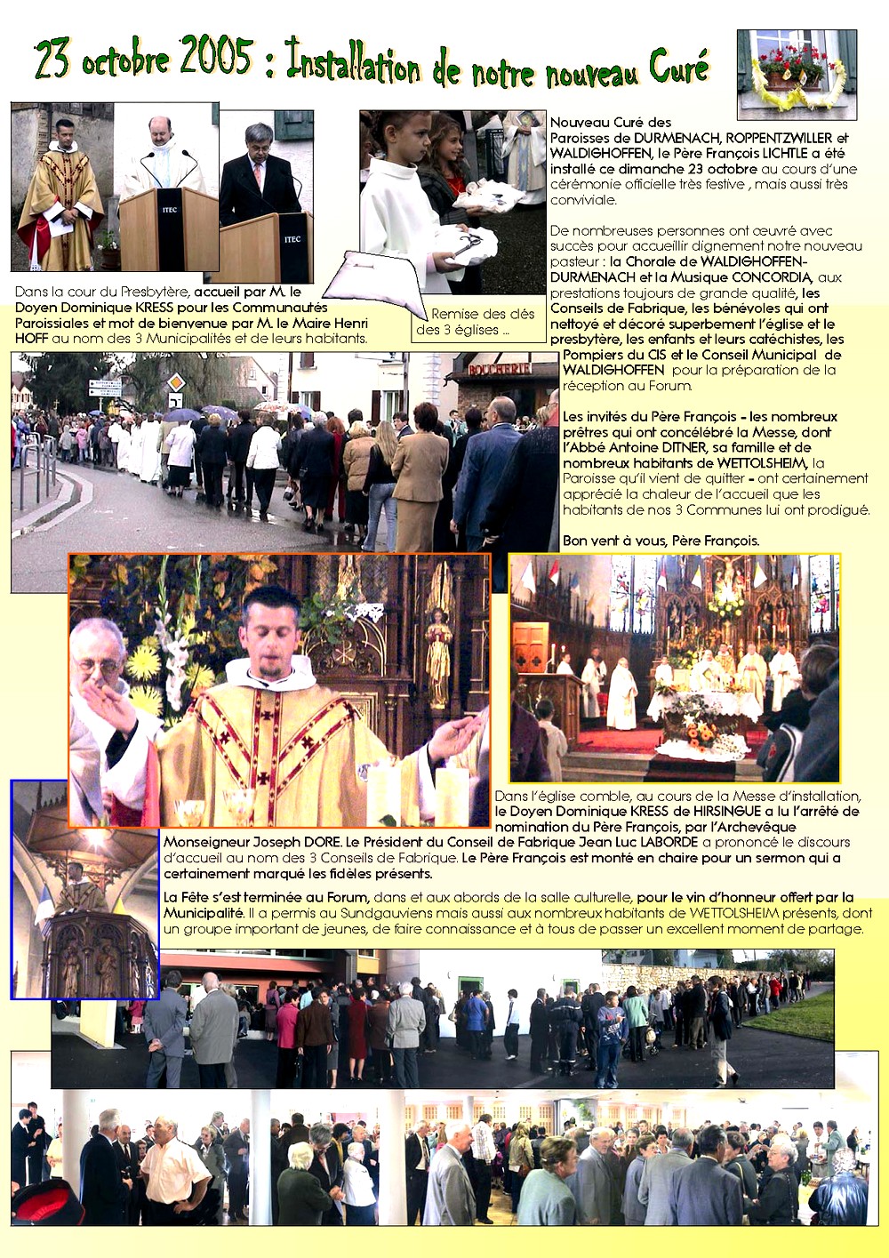 Installation du Père François Lichtlé le 23 octobre 2005-bulletin municipal de Waldighoffen 66