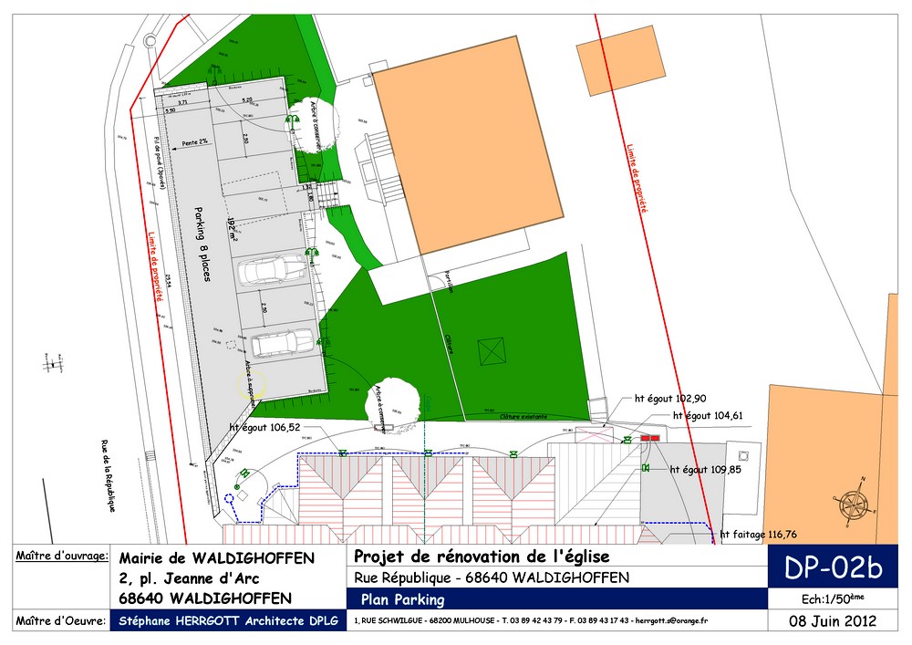 Vous êtes ici : Accueil Vie cultuelle Les travaux de rénovation de l'église et du presbytère Photos travaux église de Waldighoffen (ordre chronologique) 2012/09/06 Plan Parking presbytère (architecte Stéphane Herrgott)