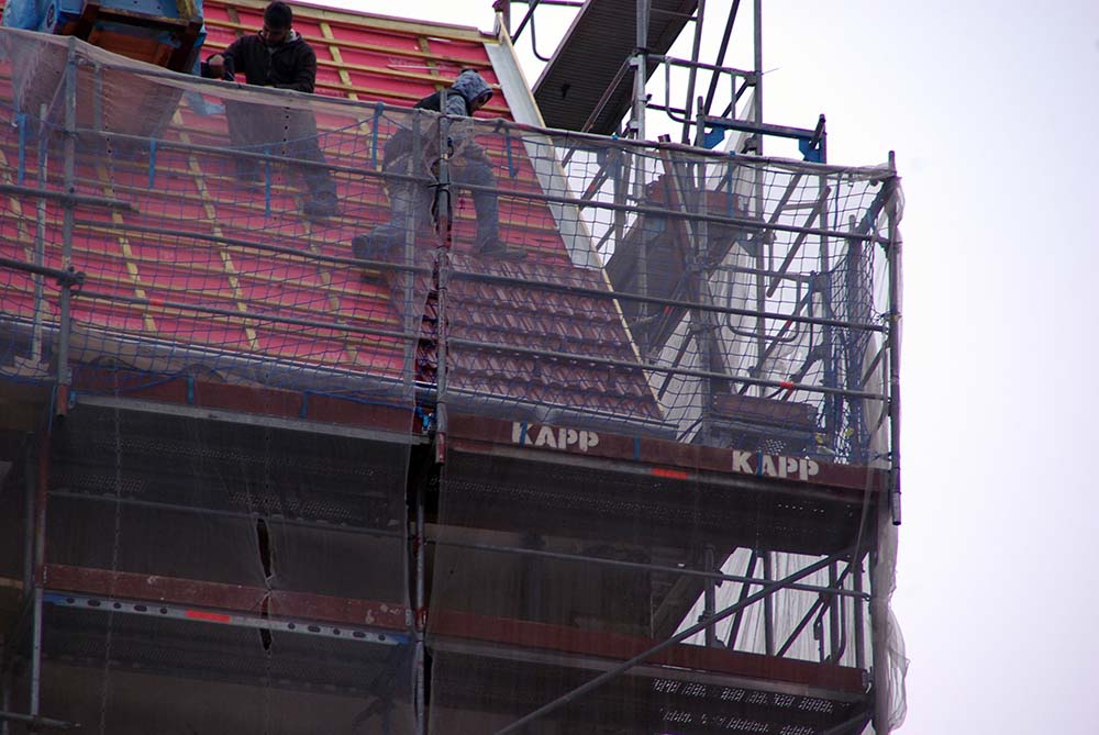 Les travaux sur le toit du clocher de l'église de Waldighoffen - photo Joseph Haas