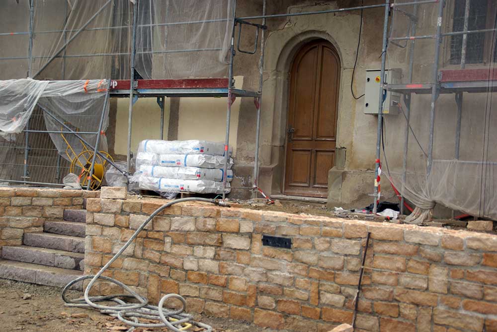 Autour de l'église Saints Pierre et Paul de Waldighoffen les travaux se poursuivent avec la création d'un large parvis.