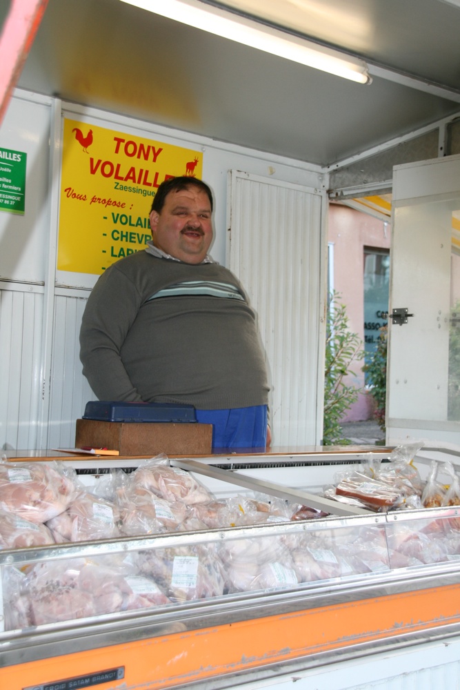 Daniel Schluraff à son stand Tony Volailles présents au marché hebdomadaire de Waldighoffen.