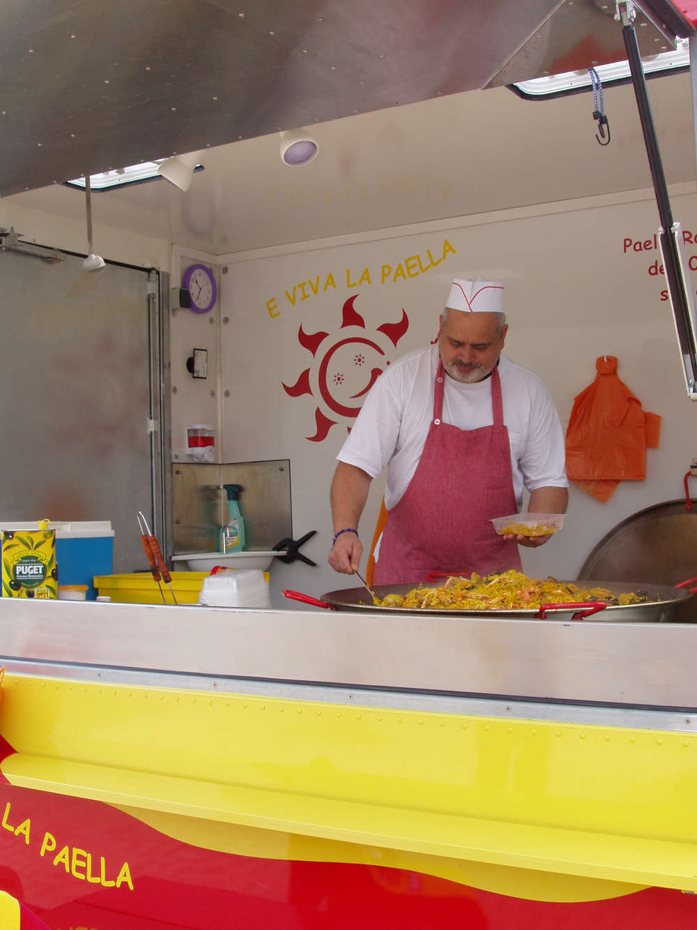 M. Girard remplissant une barquette dans son camion E Viva La Paella