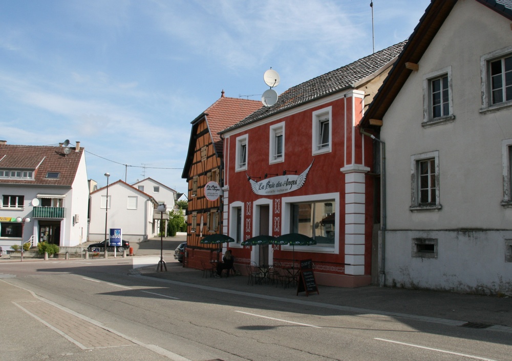 Photo depuis la rue du Maréchal Joffre de la façade du salon de thé et boutique Zen La Baie des Anges à Waldighoffen.