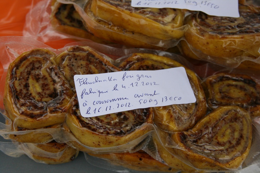 Les Fleischnaka au foie gras proposés par la Maison du Fleischnaka de Walheim, présent au marché hebdomadaire de Waldighoffen, le vendredi matin.