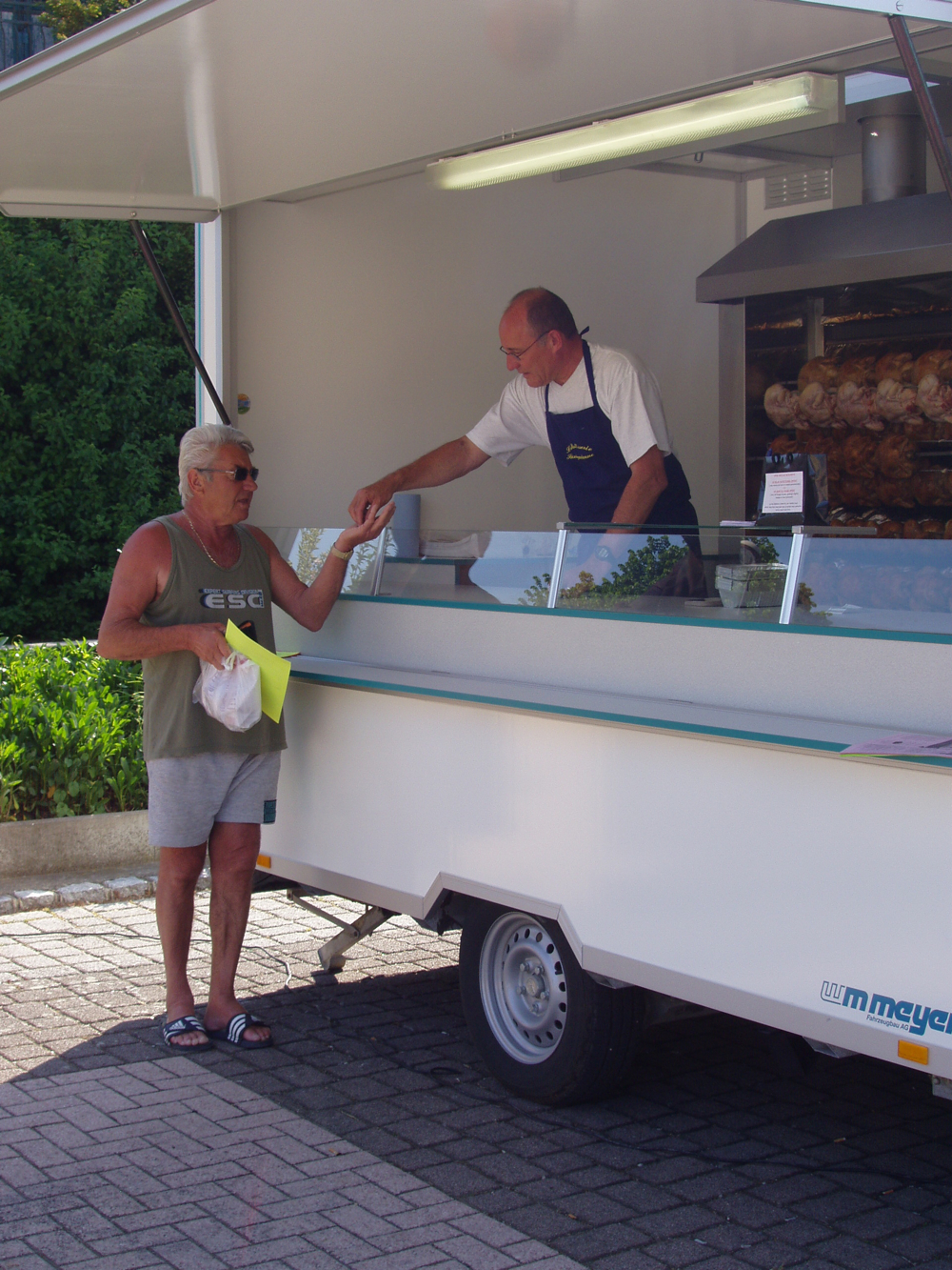 Vous êtes ici : Accueil Vie économique Annexe Un client achetant un poulet à la Rôtisserie Sundgauvienne