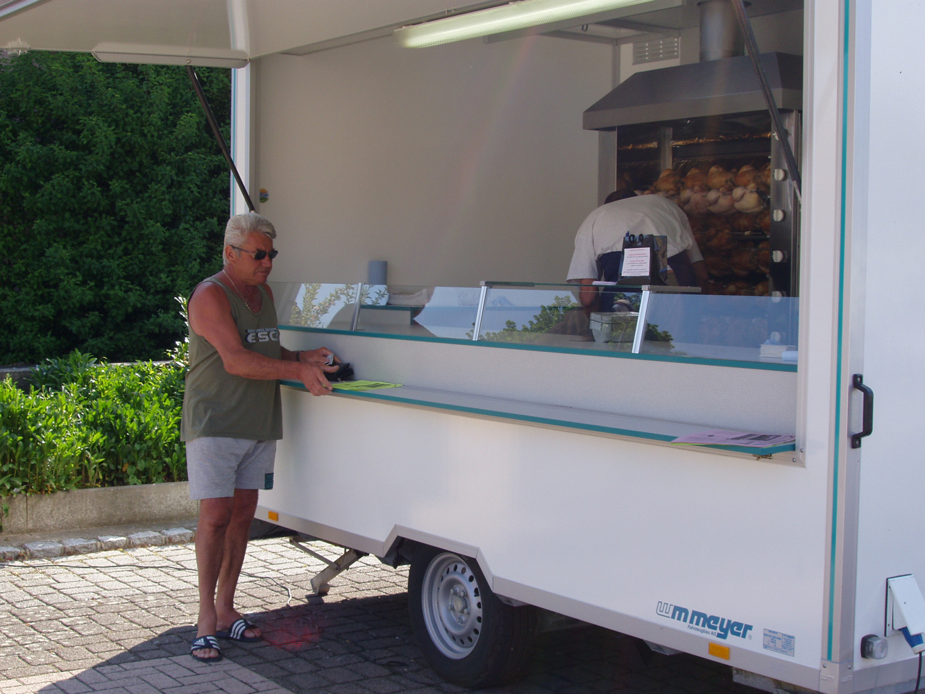 Un client attendant la préparation de son poulet à la Rôtisserie Sundgauvienne