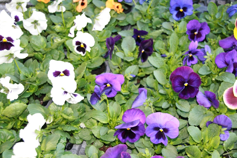 Stand Sundgau Fleurs pensées mauves et blanches