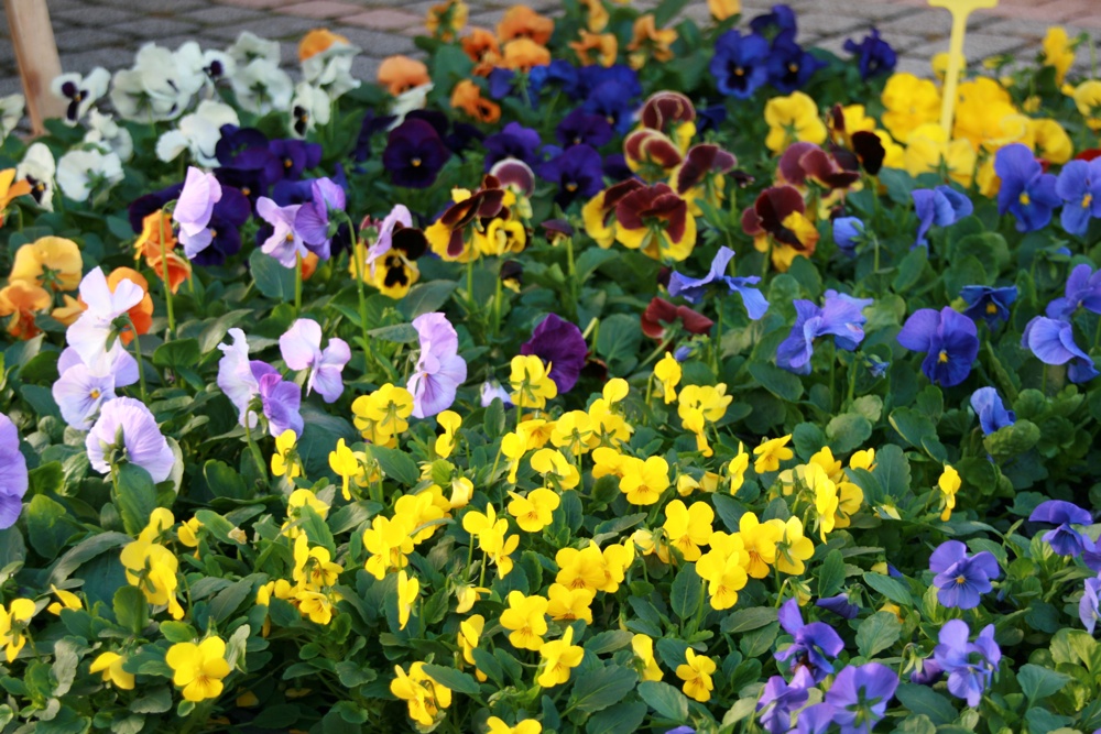 Photo élargie des pensées présentées sur le stand Sundgau Fleurs au marché hebdomadaire de Waldighoffen.