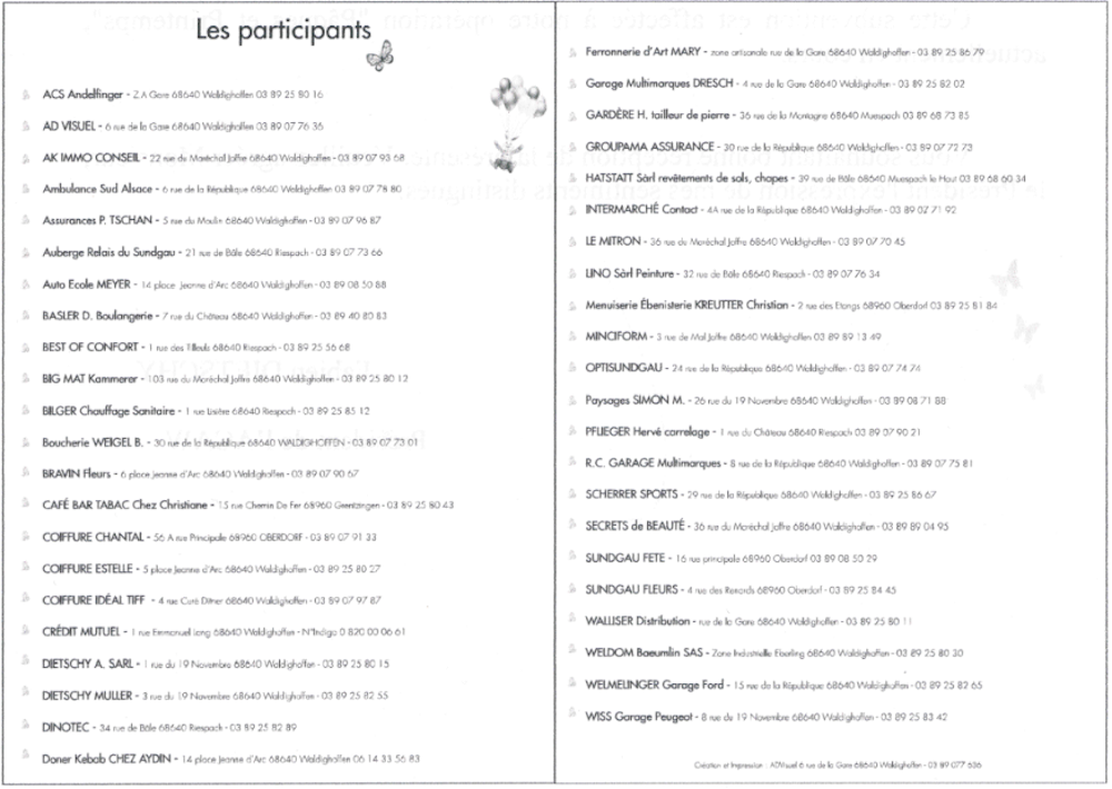 La liste des participants des commerçants de l'ACAW de Waldighoffen à l'opération de Pâques 2013.