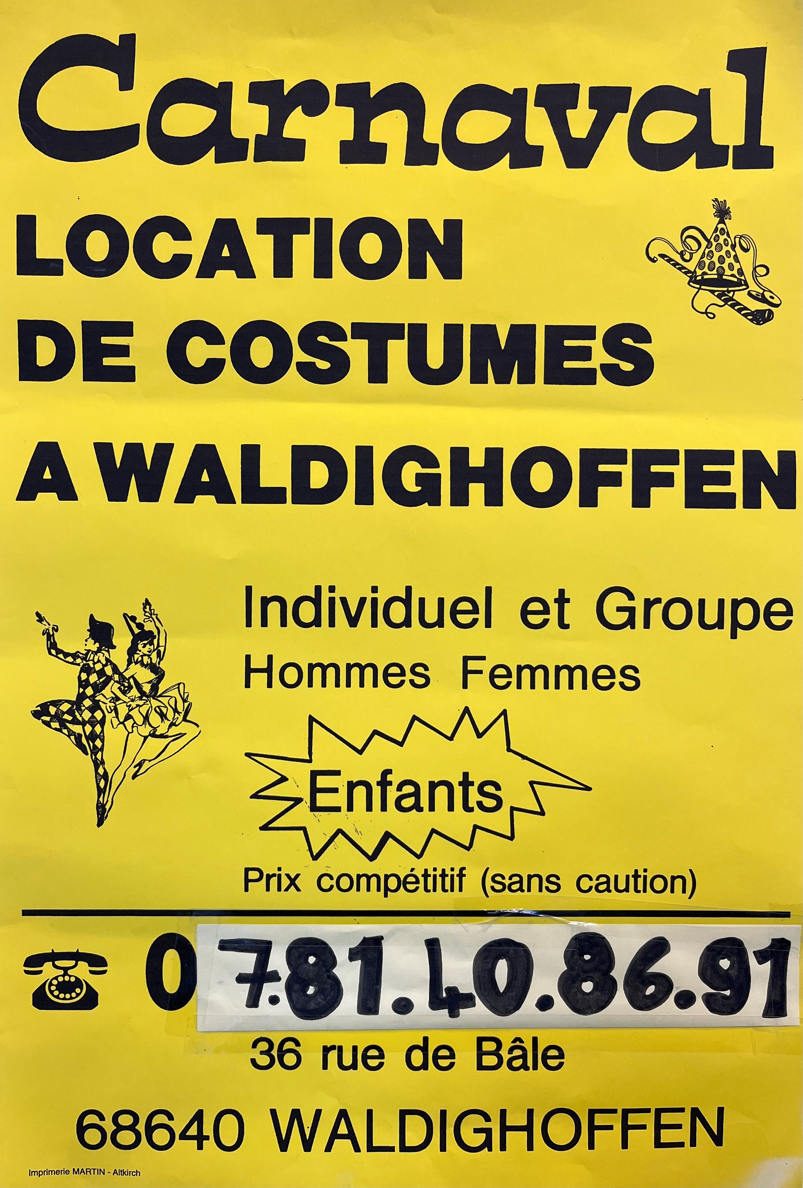 L'affiche devant le domicile de Madame Hemmerlin ou elle loue ses costumes et déguisements.