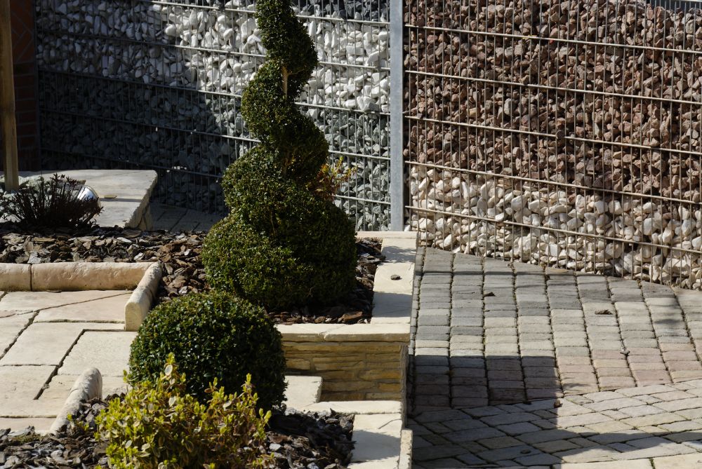 Un coin chez BigMat Kammerer pour présenter des exemples de murs en gabillon, des pavés, des murets et d'escaliers.