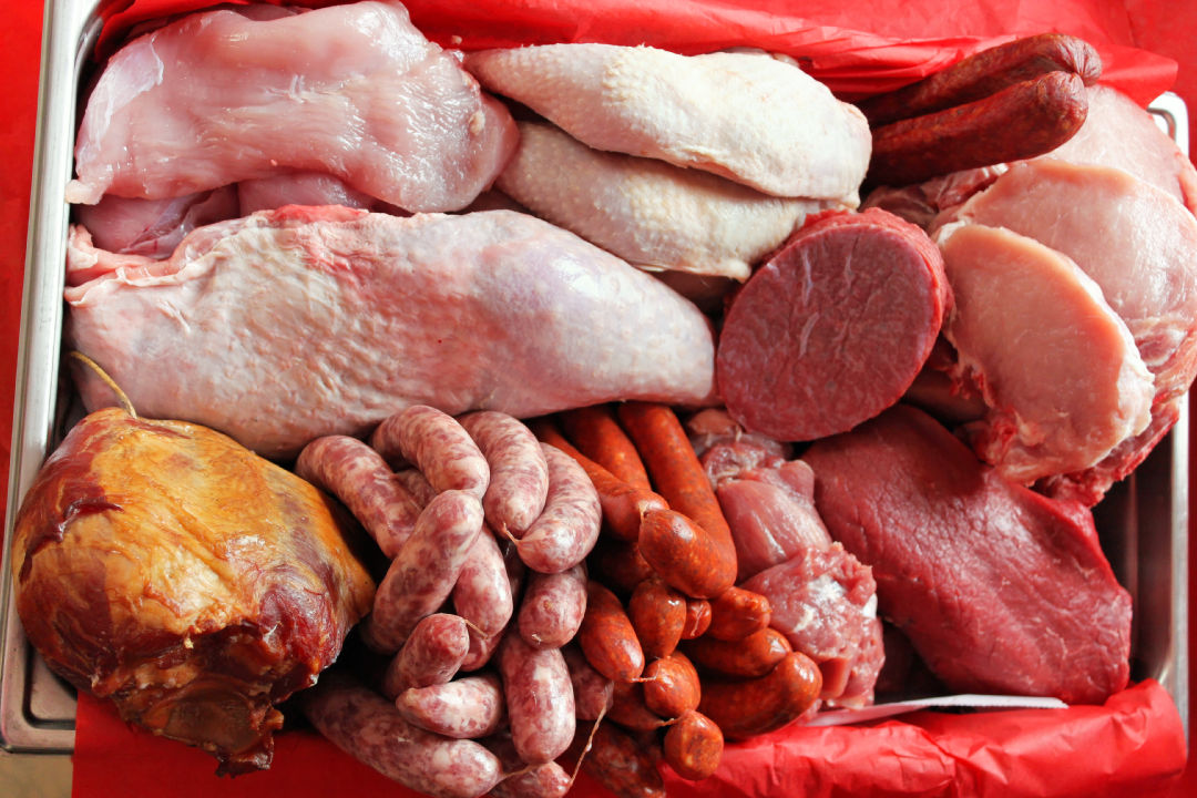 Le Colis du mois de juin de la Boucherie Weigel, est composé d'une palette fumée, des saucisses, tranches de steaks, cuisses de poulet d'Alsace, etc.