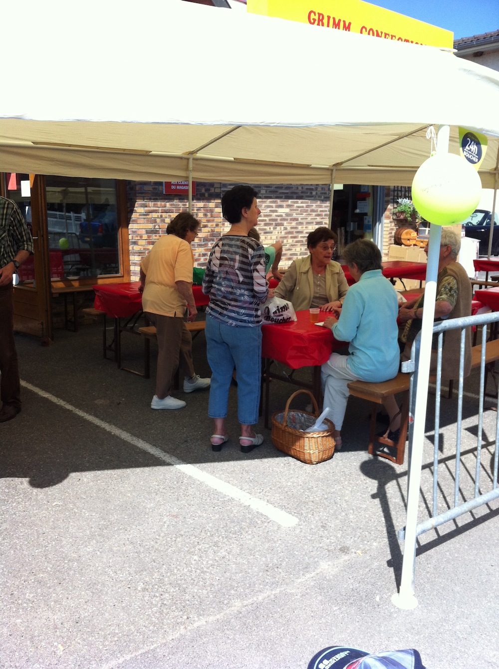 Les tables posées devant la boucherie Weigel de Waldighoffen n'ont pas désemplies pour cette première édition de l'Apéro du Boucher, les 7 et 8 juin 2013.