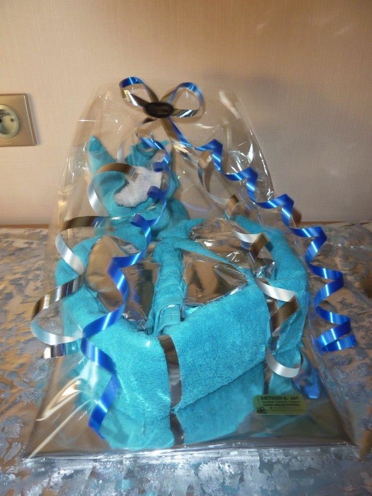 Vous êtes ici : Accueil Vie économique Commerces Confection-cadeaux Dietschy Photographies confection Dietschy Composition serviette bleu