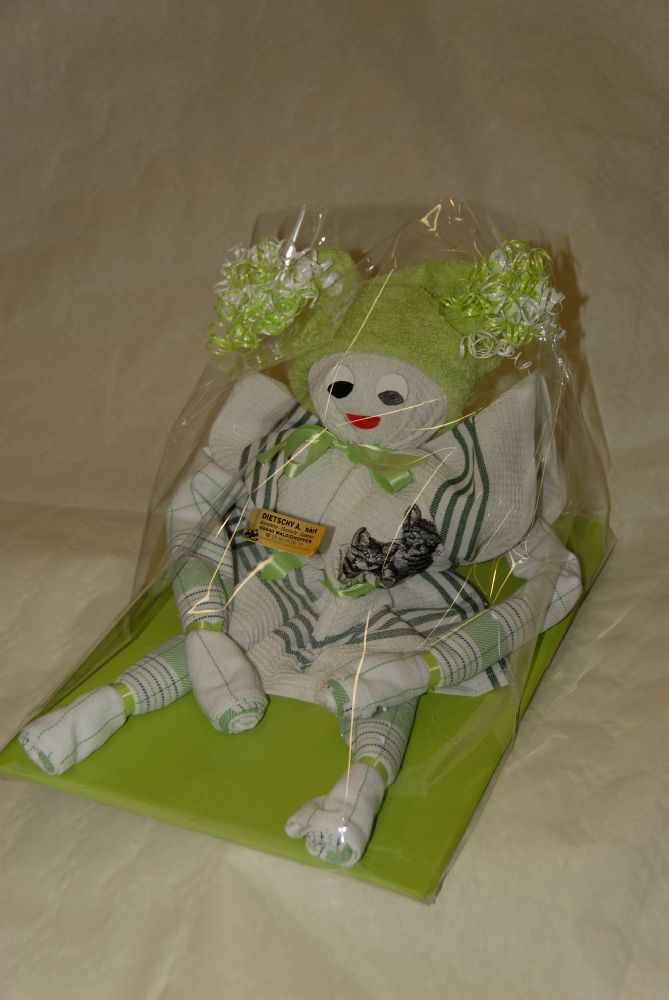 Même des essuie mains de cuisines deviennent un plaisir à offrir ! Pliés en forme de poupée une idée cadeau un plus chez Dietschy à Waldighoffen.