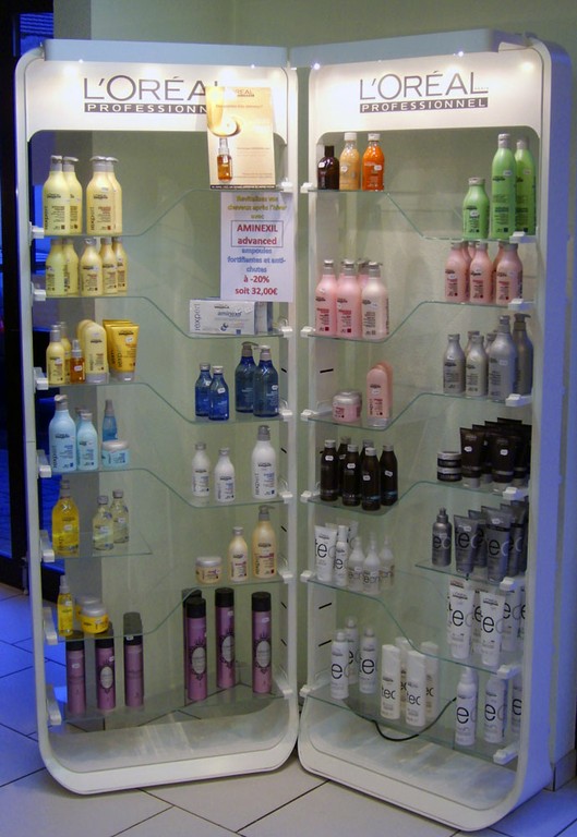 - Un espace vente de la marque l'Oréal professionnel au salon de coiffure Idéal'Tiff à Waldighoffen.