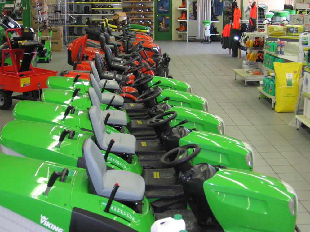 Vous êtes ici : Accueil Vie économique Commerces Walliser Photos du magasin Walliser Walliser - Autoportées Viking vertes avec bac de ramassage
