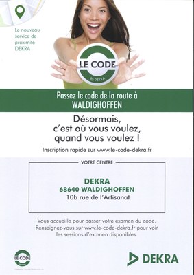 Vous êtes ici : Accueil Vie économique Entreprises Dekra - Contrôle technique Waldighoffen Le nouveau service de proximité DEKRA : passez le code de la route à Waldighoffen