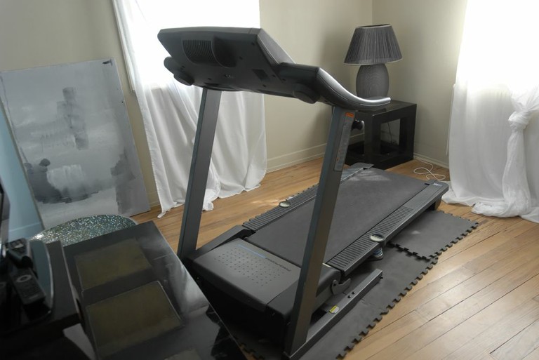 - Une grosse machine professionnel et un petit banc de musculation chez Écoute la Rivière à Waldighoffen.